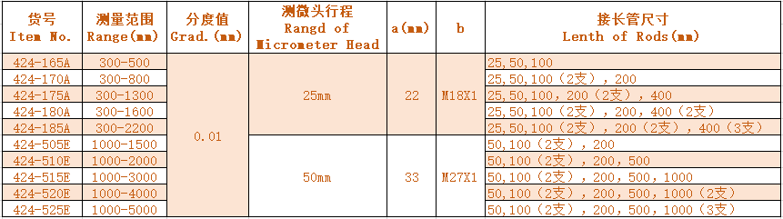 3.Different sizes of internal micrometers can be supplied upon request of customers.
