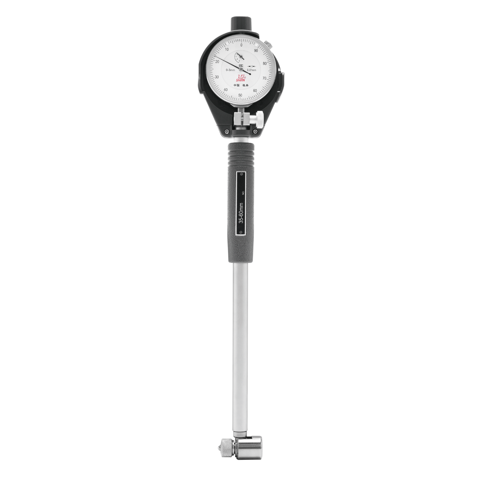 1.For internal measurement. 2.Changeable anvils for wide measuring ranges. 3.With indicator protective cover. 4.Interchangeable contact points, easy to use. 5.Equipped with a φ57mm dial indicator.