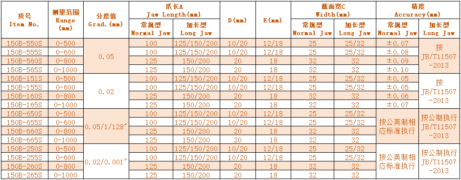 1.不銹鋼制造 Made of steainless steel. 2.可進行外尺寸、內尺寸、臺階尺寸測量 Can measure OD,ID,step dimensions. 3.長量爪型通常用于測量難以達到的位置 With special long jaw design.