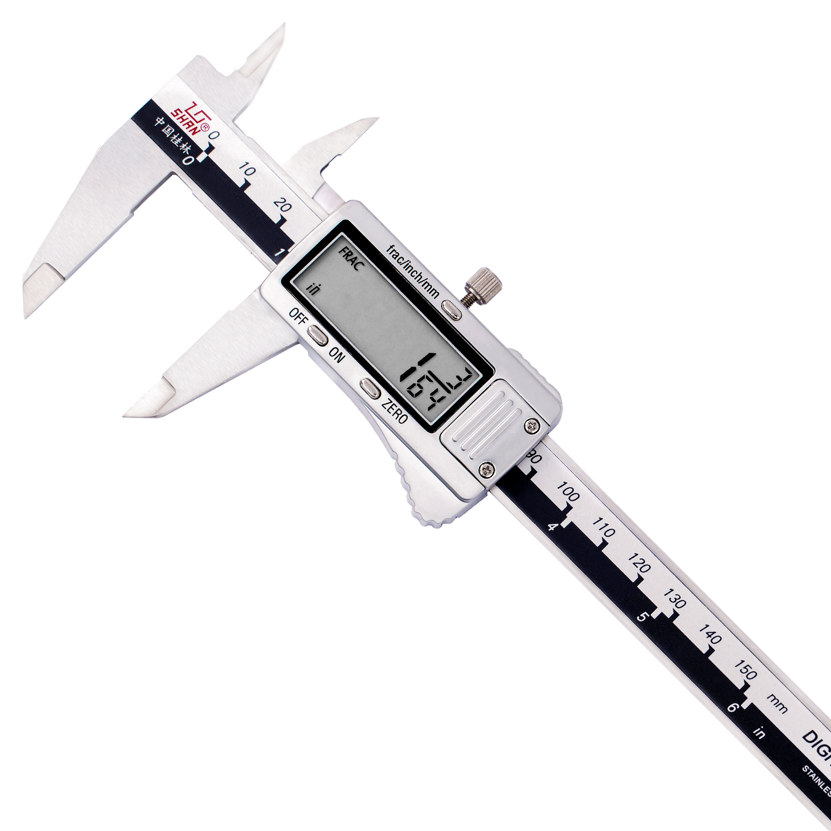 6.能對英制尺寸實(shí)現(xiàn)分?jǐn)?shù)顯示和小數(shù)顯示方式 For inch system,the digital caliper can display fractional,or decimal numbers.