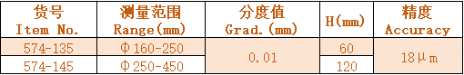 1.可?于測量內徑尺? For internal measurements. 2.?作?程4mm Contact point moving range: 4mm 3.百分表完全?堅固的防護罩保護 With indicator protective cover. 4.插?式可換測頭,使??便,測量范圍? Interchangeable contact points, easy to use, wide measuring ranges.